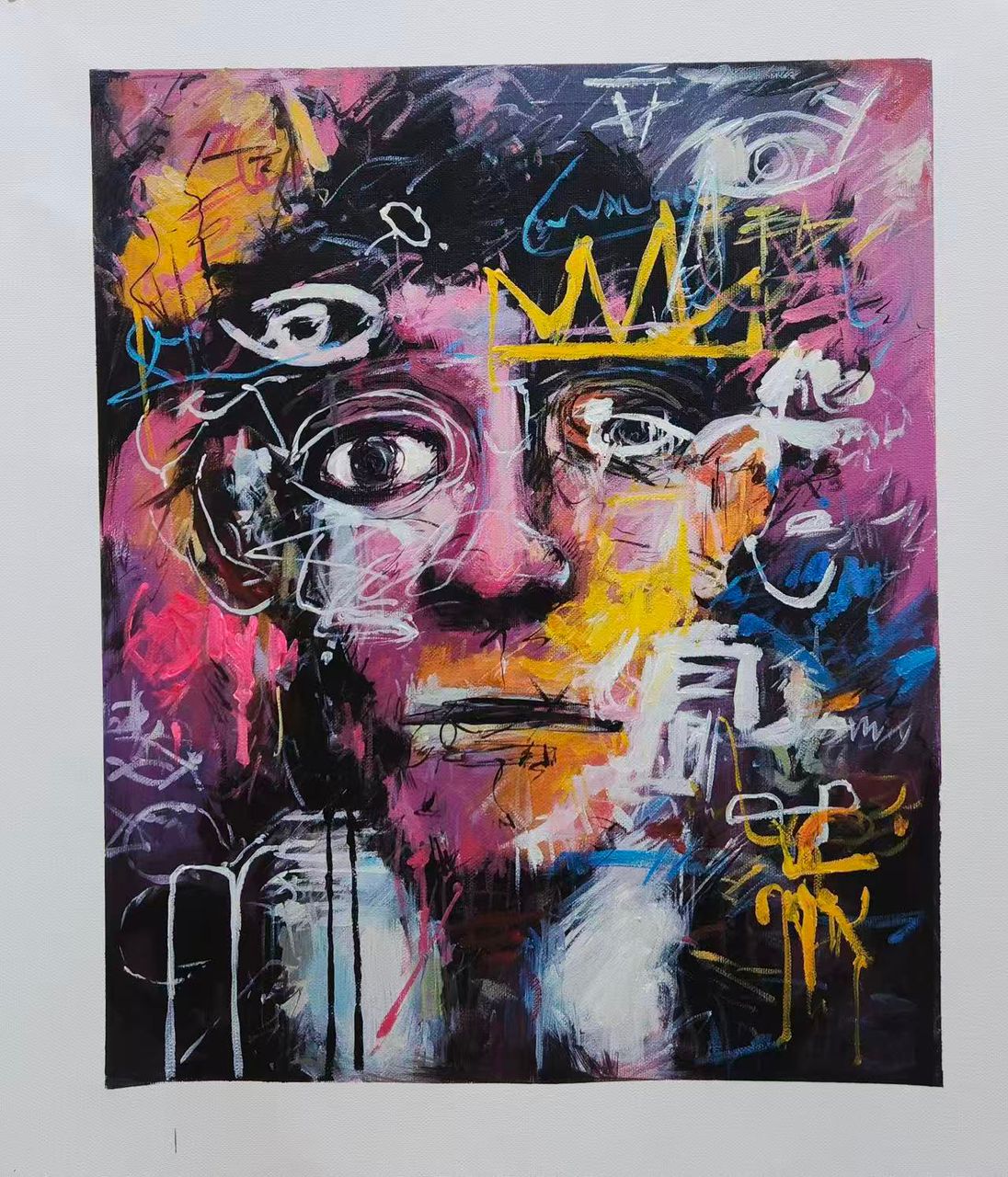 Power confronts the viewer with an intense, unflinching portrait in which authority is expressed through psychological force rather than dominance. The stark gaze and compressed facial features suggest control held under strain, reinforced by Simone’s aggressive layering and charged color contrasts. The crown hovers as a stark emblem, asserting presence while simultaneously exposing vulnerability beneath it. In this work, power emerges as something internal, unstable, and deeply human rather than absolute.