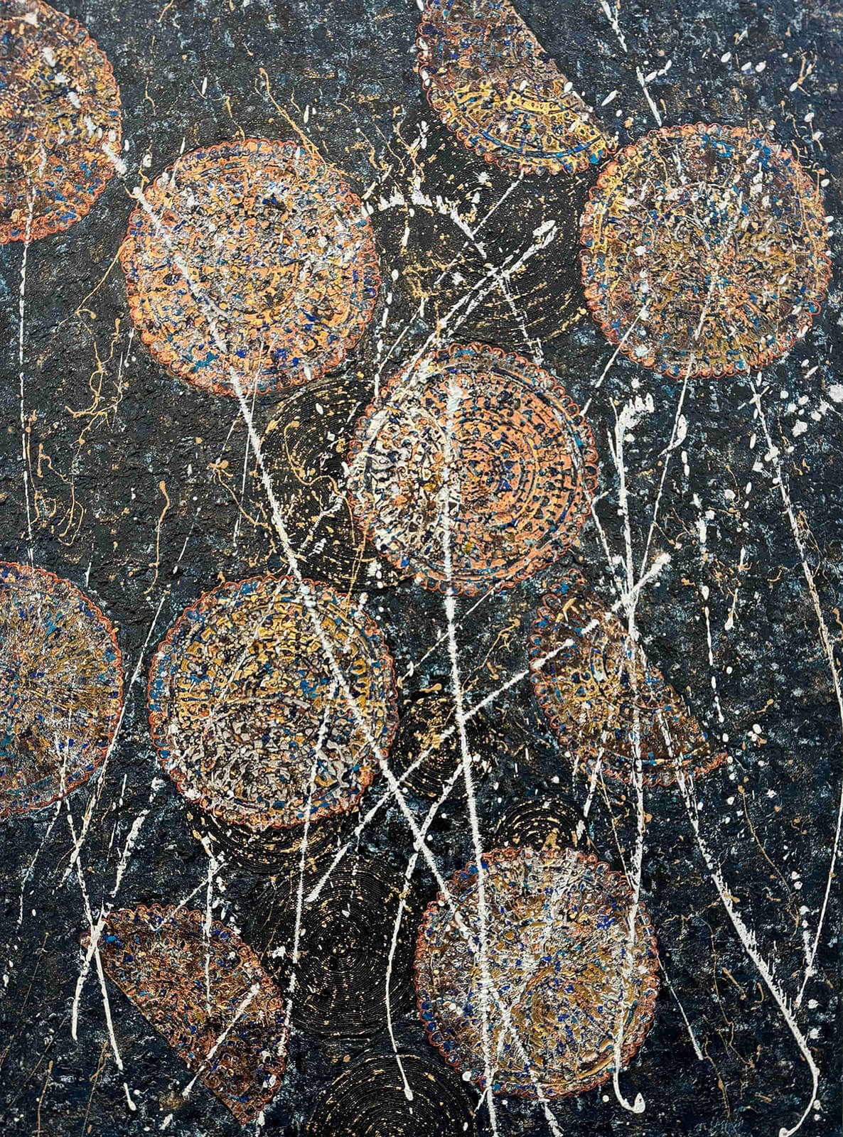 Through "Emerge," Charlotte invites viewers to contemplate their own moments of emergence—those times when they have risen from challenges or seen new potential in the midst of uncertainty. The piece stands as a testament to resilience and the ever-present potential for transformation. With her expert use of texture, colour, and form, Charlotte creates a vivid narrative of emergence that resonates on both a personal and universal level, making "Emerge" a powerful and thought-provoking addition to her body of work.