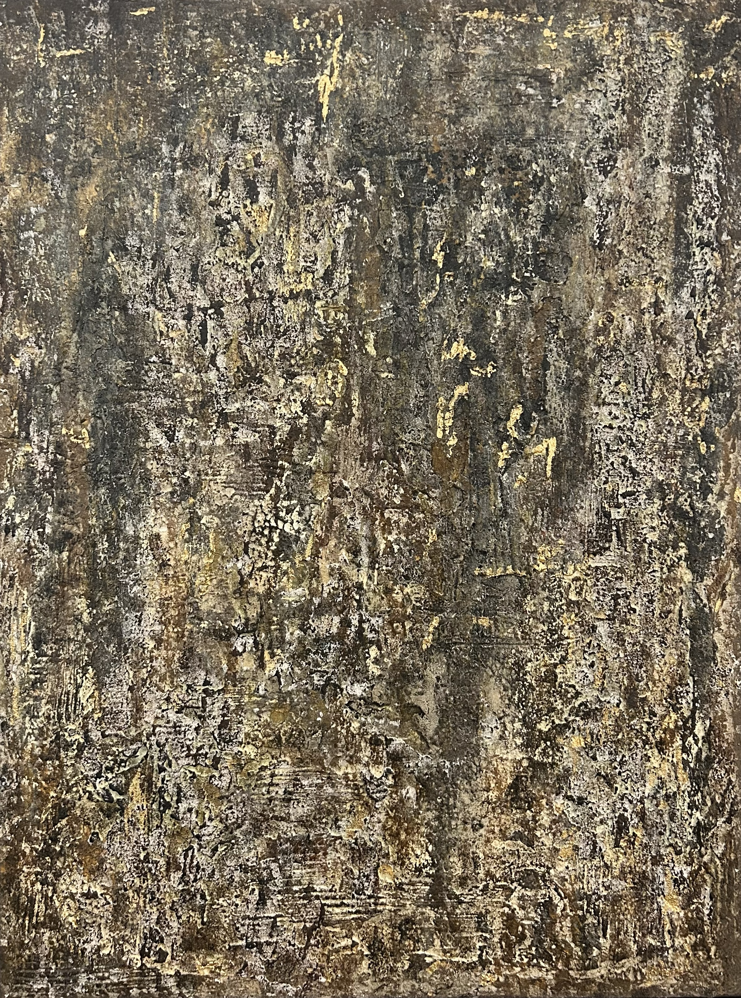 "Fractured Earth" by Charlotte Araghi represents the delicate balance between resilience and vulnerability in our natural world. The artwork captures the scars and transformations of the Earth, symbolizing both its enduring strength and the fragility under the pressures of time and human influence. Through its textured surface and subtle gold accents, it reflects the beauty that persists amidst decay and the urgent need to cherish and protect our planet.