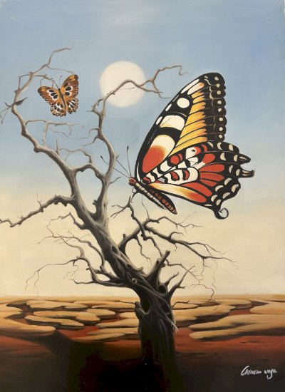 Christina Vega, an artist with a visionary touch, breathes life into the enchanting realm of surrealism and the intricate fabric of dreams through her remarkable collection, "Butterfly Effect." Immersed in the profound concept of the butterfly effect, where minor actions can unfurl into significant life transformations, she masterfully mirrors this notion in her artistry. Fueled by her dreams and those subtle, yet transformative instances in life, Christina intricately weaves a narrative, infusing each stroke with the potential for a profound impact. Much like a butterfly's gentle flutter can trigger a cascade of events, Christina's art beckons us to recognize the potency of seemingly small actions in shaping our fate.