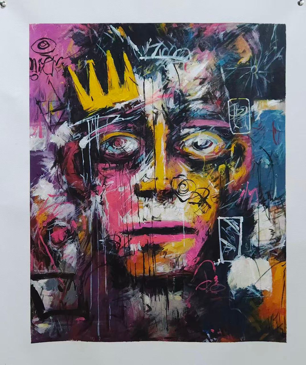 monarchy distills Pierre Simone’s exploration of power into a single, confrontational visage marked by intensity and restraint. The fractured surface and stark contrasts suggest authority under pressure, shaped as much by inner conflict as by outward control. Simone’s expressive layering and symbolic crown reduce kingship to a psychological state rather than a political role. The work reads as a meditation on the fragile balance between dominance, responsibility, and personal identity.