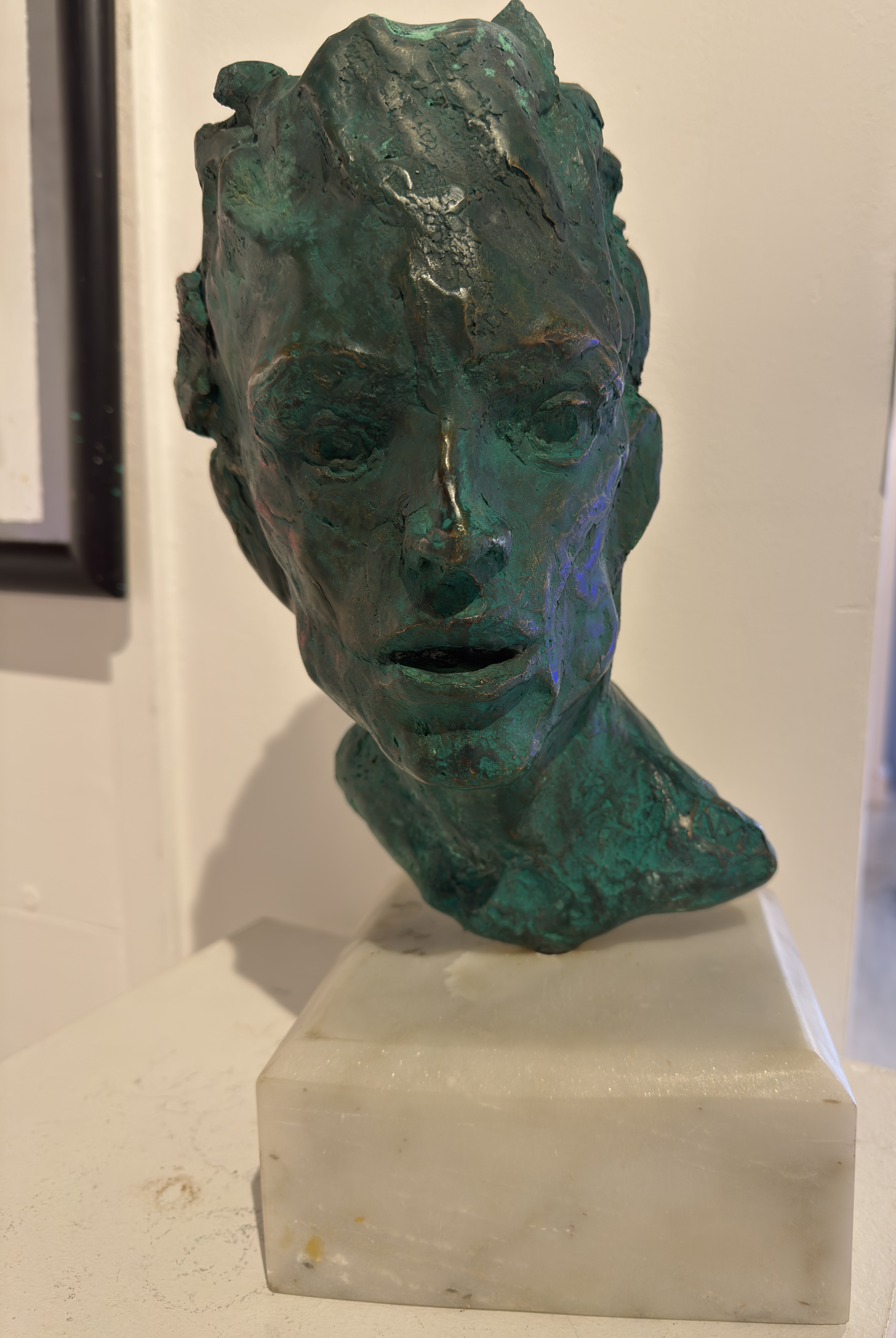 Rooted in classical sculptural training yet interpreted through a contemporary sensibility, the work balances structure with expressive modelling. The textured bronze surface preserves the immediacy of the sculptor’s hand, allowing light to travel across the form and animate its psychological depth. Rather than pursuing strict realism, the sculpture distils the human presence into something more timeless and symbolic.